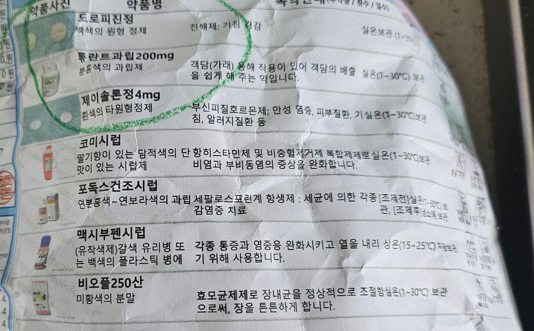 6/1~6/11 기침,콧물등으로 코감기약 복용