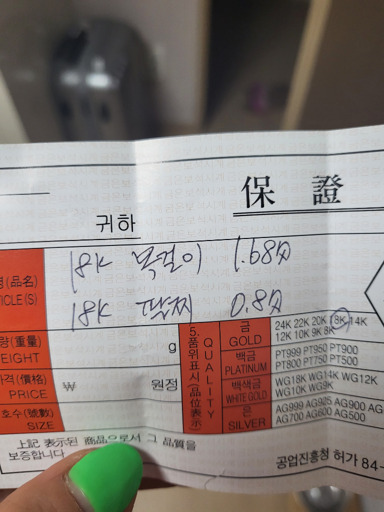 위 사진만 보아서는 세공비가 얼마인지 알 수가 없습니다.
