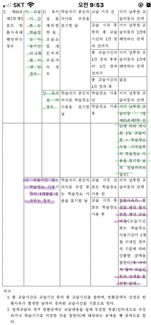 1.반환사유가 발생한 날까지의 교습비를 뺀 나머지 금액을 반환