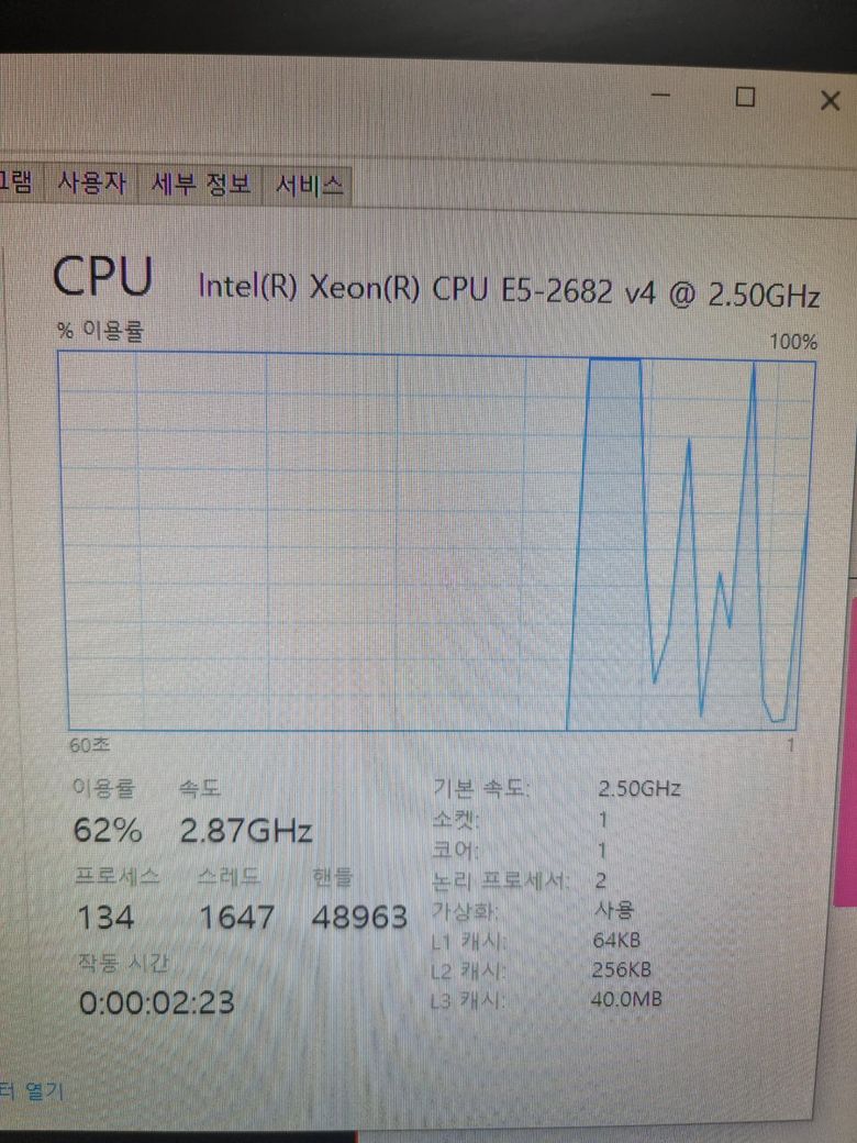 cpu사용률이 100%~31% 왔다갔다 합니다