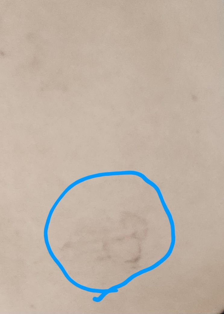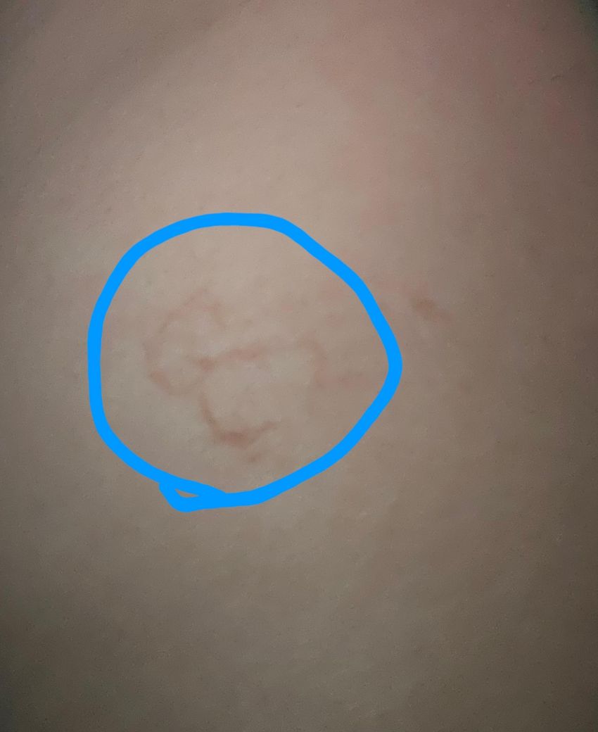 곰팡이 감염 가능성이 있어보입니다. 사진상 병변은 경계가 불규칙한 고리 모양, 중심부는 비교적 옅고 가장자리가 약간 붉은 형태로 보입니다. 촉감이 거칠고 통증이 없는 점을 종합하면 가장 가능성이 높은 것은 체부 백선(피부 곰팡이 감염)입니다.