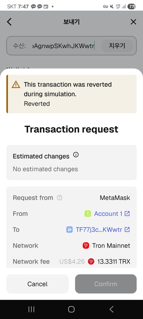 메타마스크에서 테더 전송 실패 문제는 대역폭 포인트와 에너지 상태뿐 아니라 네트워크 혼잡, 트론 네트워크 정책변경, 토큰 종류 일치 여부 등 여러 요소에 영향을 받습니다. 우선 보내려는 토큰이 TRC20 기반인지 확인하고, 메타마스크와 트론 네트워크 지갑의 최신 상태를 점검하며, TRX 잔액으로 필요한 에너지나 대역폭이 충분한지 재확인해야 합니다. 때로는 네트워크 혼잡 시 대역폭 포인트가 충분해도 거래가 실패할 수 있으니, TRX 충전을 통해 에너지를 보충하거나 잠시 후 재시도하는 것도 방법입니다. 또한, 사용 중인 메타마스크 버전이나 네트워크 설정이 문제를 일으킬 수 있으니 최신 버전으로 업데이트하고 네트워크 연결을 다시 설정해 보세요