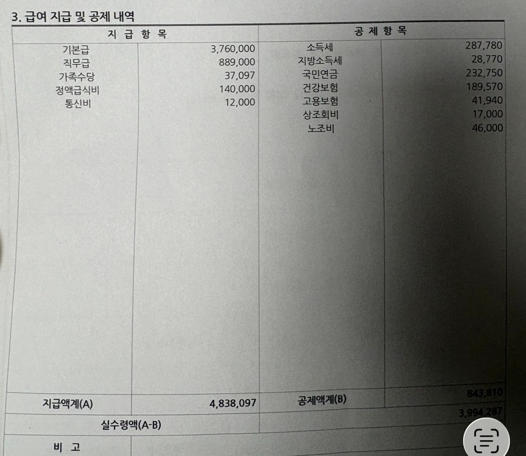 퇴사 급여명세서 확인 부탁드립니다.