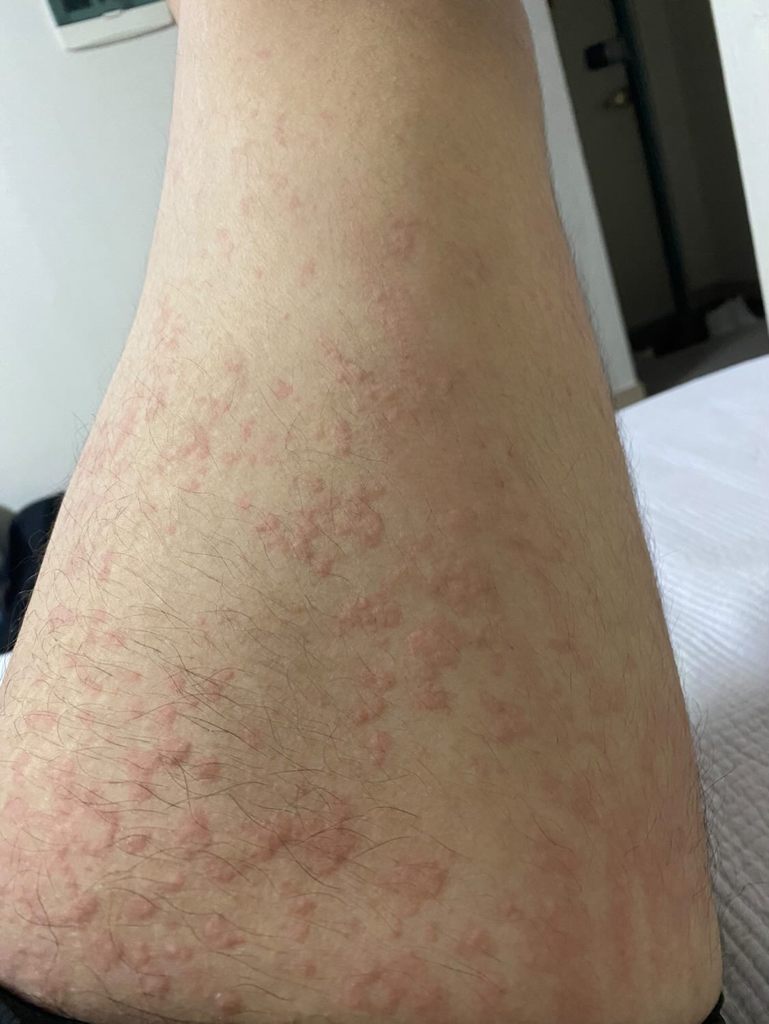 알러지성 두드러기가 많아 보이며 항히스타민제 등 사용하며 경과를 보시기 바랍니다.