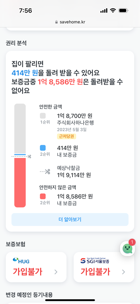 하나은행 1순위로 근저당 1.9억정도 잡혀있고