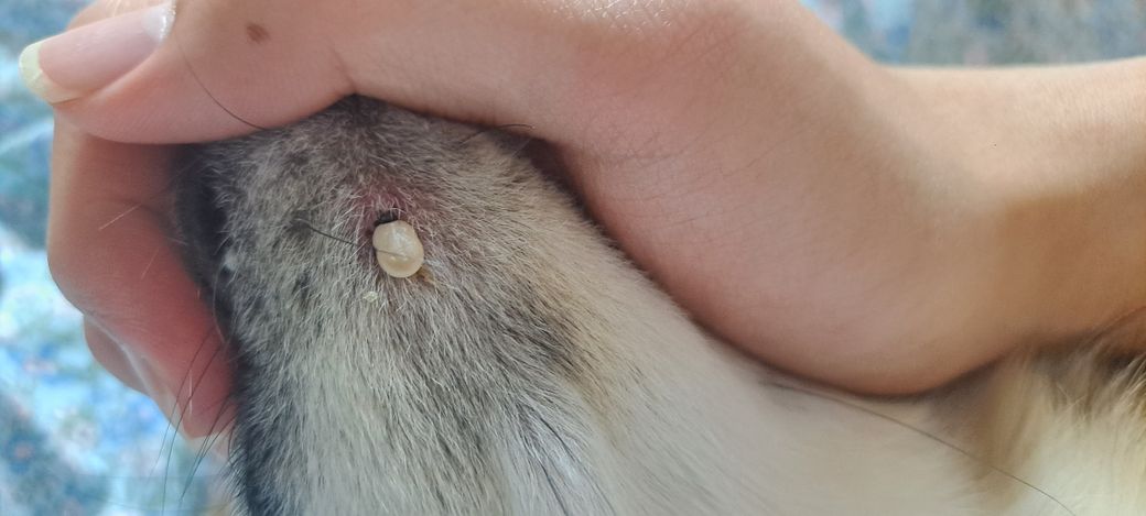 강아지 턱에 이렇게 생긴 하얗고 불투명한 뾰루지 같이 생긴걸 찾았는데 건들면 아파하더라구요. 딱히 간지럽거나 하진 않은지 긁진 않고 있는데... 이게 뭘까요?