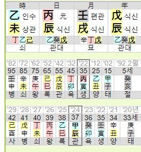 결혼운에 대해서는, 일지(日支)에 위치한 진토(辰土)가 안정적이고 신뢰할 수 있는 배우자를 나타내며, 이러한 배우자를 만날 가능성이 높습니다. 그러나, 현재의 대운인 임진(壬辰)과 계사(癸巳) 시기에는 결혼운이 약간 불안정할 수 있습니다. 수(水) 기운이 강한 시기에는 감정의 기복이 심해질 수 있으며, 이는 연애와 결혼에 영향을 줄 수 있습니다. 이러한 시기에는 신중하게 상대를 선택하고, 감정을 잘 다스리는 것이 중요합니다.