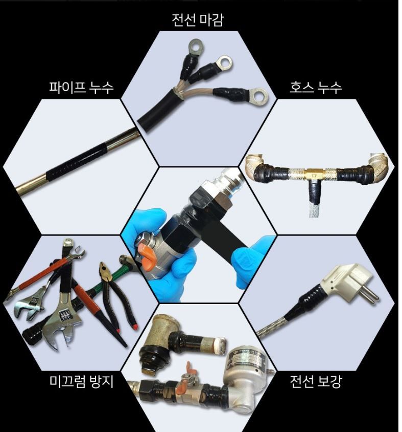 - 용도 : 공업용으로 누수된 곳을 메꾸거나, 공구를 사용할 때 미끄러지지 말도록 손잡이 용도로, 전선을 보강하는 용도 등으로 사용됩니다.
