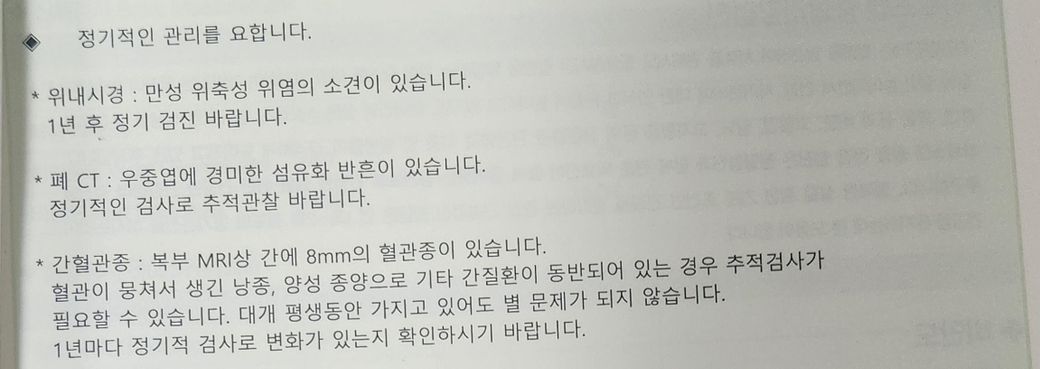 건강검진 소견입니다.