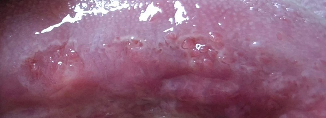혀옆이 갑자기 약하게 따끔거리더니 이런게 났습니다 통증은 줄어들었는데 뭔가 파인것같은 모양에 이상한 수포가 몰려있는데 무슨병일까요?