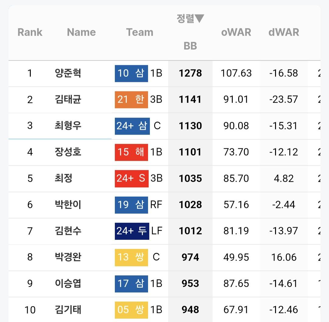 프로야구에서 통산 볼넷이 가장 많은 선수는 삼성 라이온즈의 전설 양준혁 선수로 통산 1278개의 볼넷을 기록하여서 통산 볼넷이 가장 많습니다.