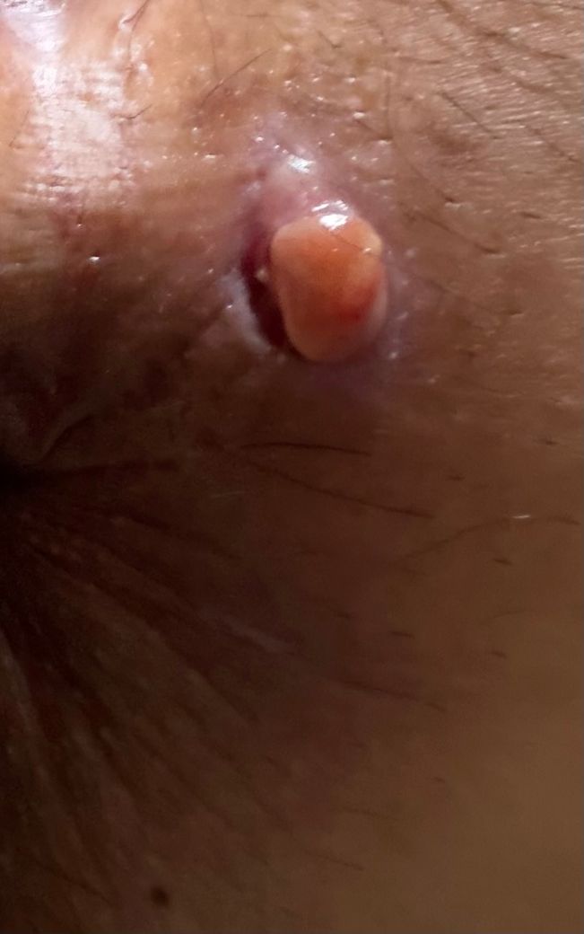 사진과 경과를 종합하면, 6주차 항문농양 수술 후 상처 부위에서 살이 도톰하게 튀어나온 모습은 흔히 보이는 육아조직(granulation tissue) 또는 과도 육아조직 가능성이 높습니다. 상처가 아물면서 새 살이 차오르는 과정에서 일부가 돌출되어 보일 수 있고, 이 부위는 신경이 예민해 통증이 동반되는 경우가 많습니다. 다만 통증이 이전보다 뚜렷하게 심해졌다면 단순 치유 과정 외에 염증 지속, 배농이 완전히 되지 않았거나 치루가 남아 있는 경우도 함께 고려해야 합니다.