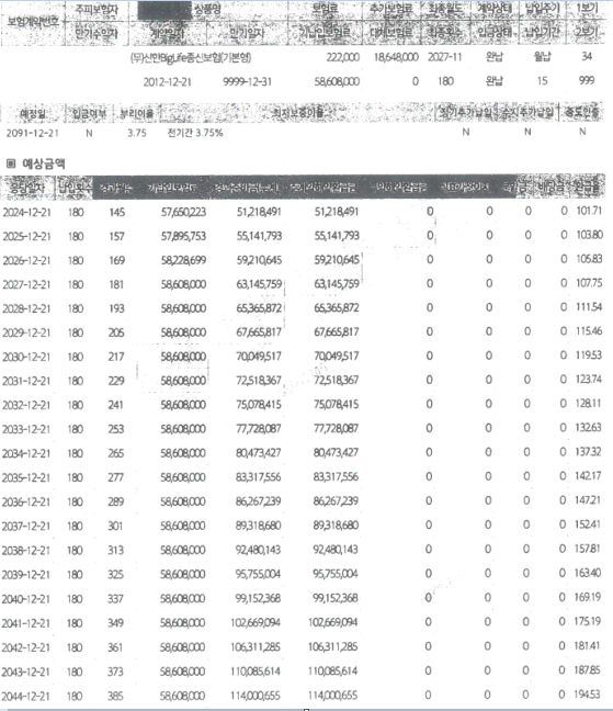 2027년도에 보험 납입 종료이지만 완납 한 상태고 매년 추가납입을 하는 중입니다.