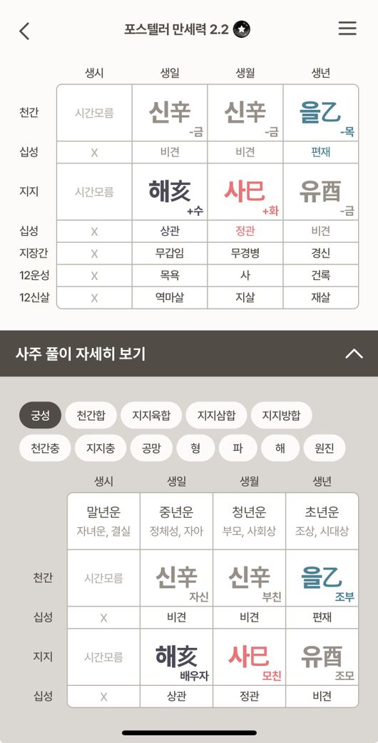 포스텔러로 만세력 알아봤는데 풀이가 자세히 적혀있지 않아서 무슨 말인지 도무지 모르겠어요 일일이 다 찾아보기도 번거롭고.. 짧게라도 괜찮으니 풀이 부탁드립니다.. 🥹🥹2개의 답변이 있어요!