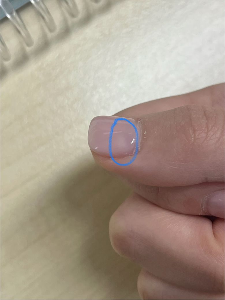 젤네일 받은지 1주일 조금 넘었는데 오늘 손톱을 보니까 살짝 하얗게 된 부분이 있어서 여쭤봅니다.