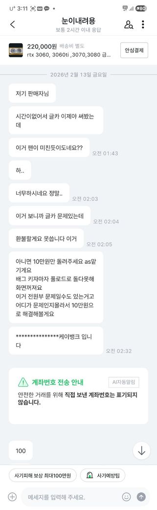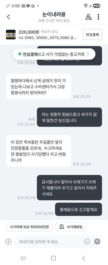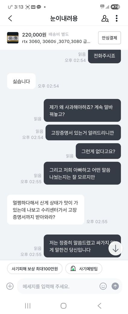 중고거래중 제가 판 물건이 문제가 있다며 일방적으로 예의없이 우겨서 사과를 요구했으나