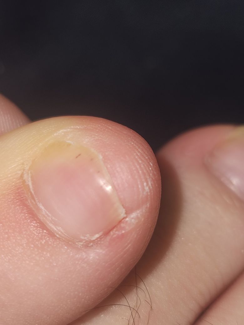 언제 생겼는지는 확인을 못했는데 왼쪽 새끼 발가락 발톱에 선인지 점인지 모를 무언가가 생겨있었습니다. 통증 같은 증상이 없어서 그동안 모르다가 오늘 발톱을 깎다가 발견했는데,