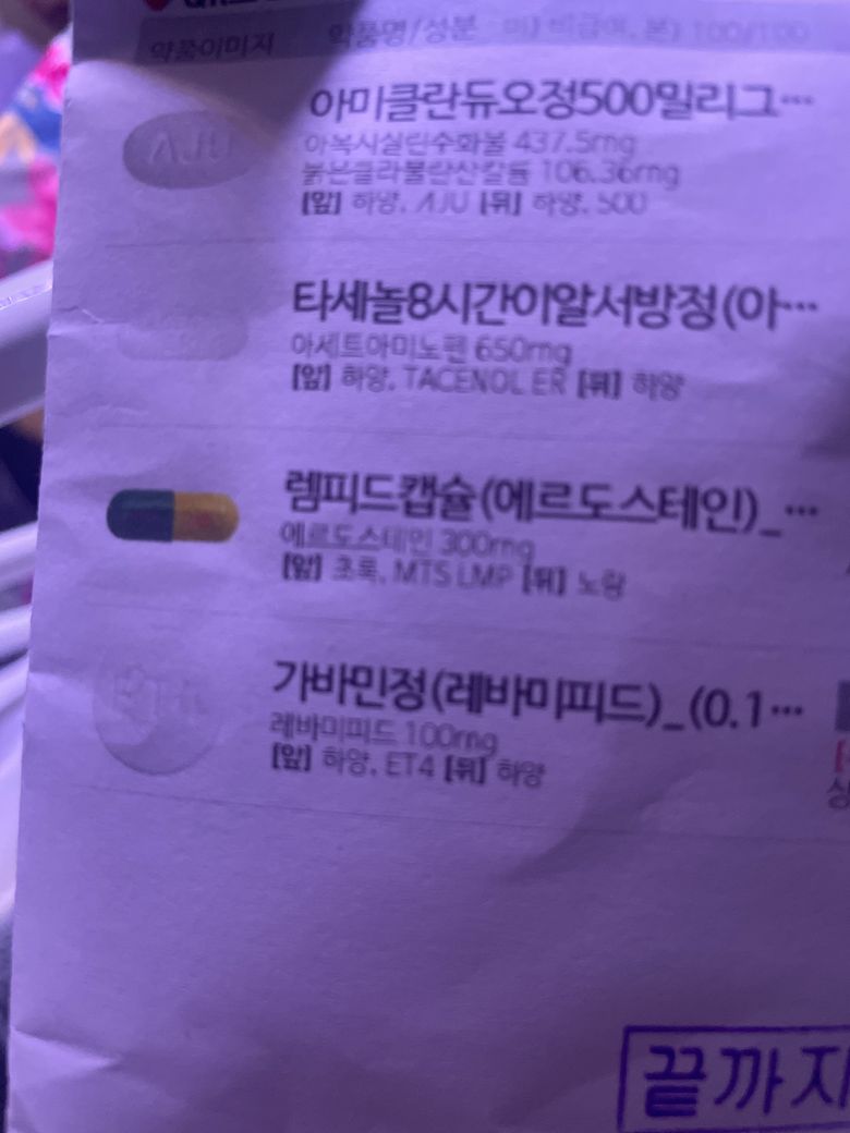 아미클란듀오정500mg / 타세놀 서방정 / 렘피드캡슐 / 가바민정을 복용하시면서
