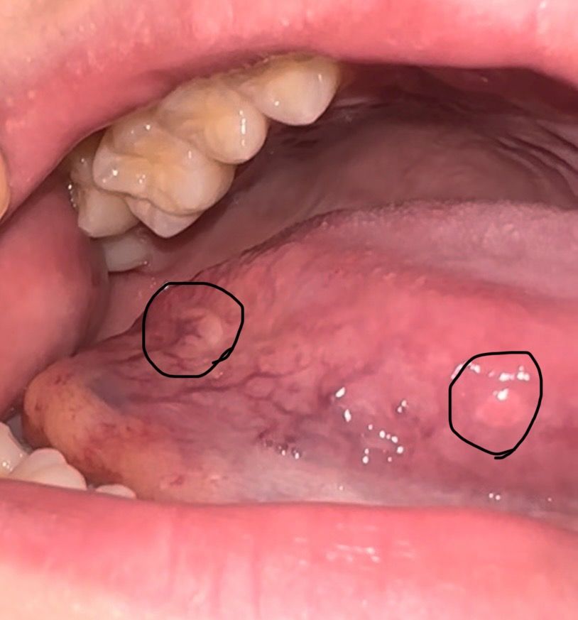 외쪽 동그라미 보시면 좀 하얀색 미끈미끈하고 부드러운 부분이 보이고 막 튀어나오진 않았어요. 오른쪽은 핑크색 혹같은게 있는데 쪼금 튀어나온 것 같아요. 이거 병원가보는게 좋을까요?