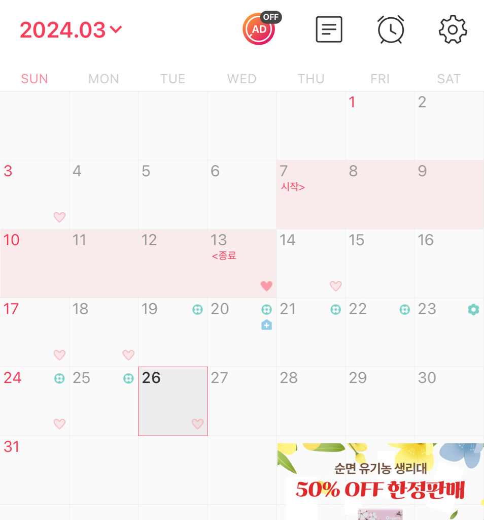 하트 표시된게 관계 가진 횟수고 피임도 다 했습니다 확인은 안 해봤지만 아마 하자는 없었을거에요.. 사정할때도 콘돔 낀채로 밖에다 했거든요.. 근데 어늘날부터 관계 가질때마다 자궁 오느 한쪽이 되게 아팠어요 원래 생리거 다가오면 그런 증상이 나왔는데 최근에 냉이 좀 많아지더니 오늘은 피가 나왔는데 이거 혹시 임신인가요..? 지금 아래가 쑤시기도 해요.. 최근에는 방광염 앓고 스트레스를 좀 받긴 했는데 뭘까요?? 생리예정일은 4월 6일이고 가슴통증이 좀 생겼어요