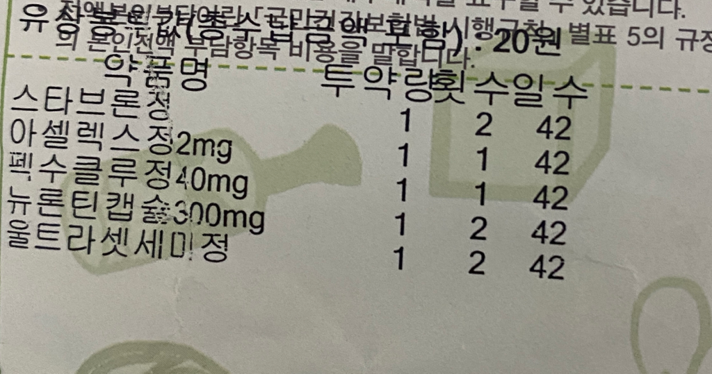 스타브론정은 우울증 치료제, 아셀렉스정은 비스테로이드성소염진통제, 펙수클루정은 위보호제, 뉴론틴캡슐은 신경병증성 통증 치료제, 울트라셋세미정은 급성 만성 통증에 효과적인 진통소염제 (아세트아미노펜, 트리마돌 복합제) 성분입니다.