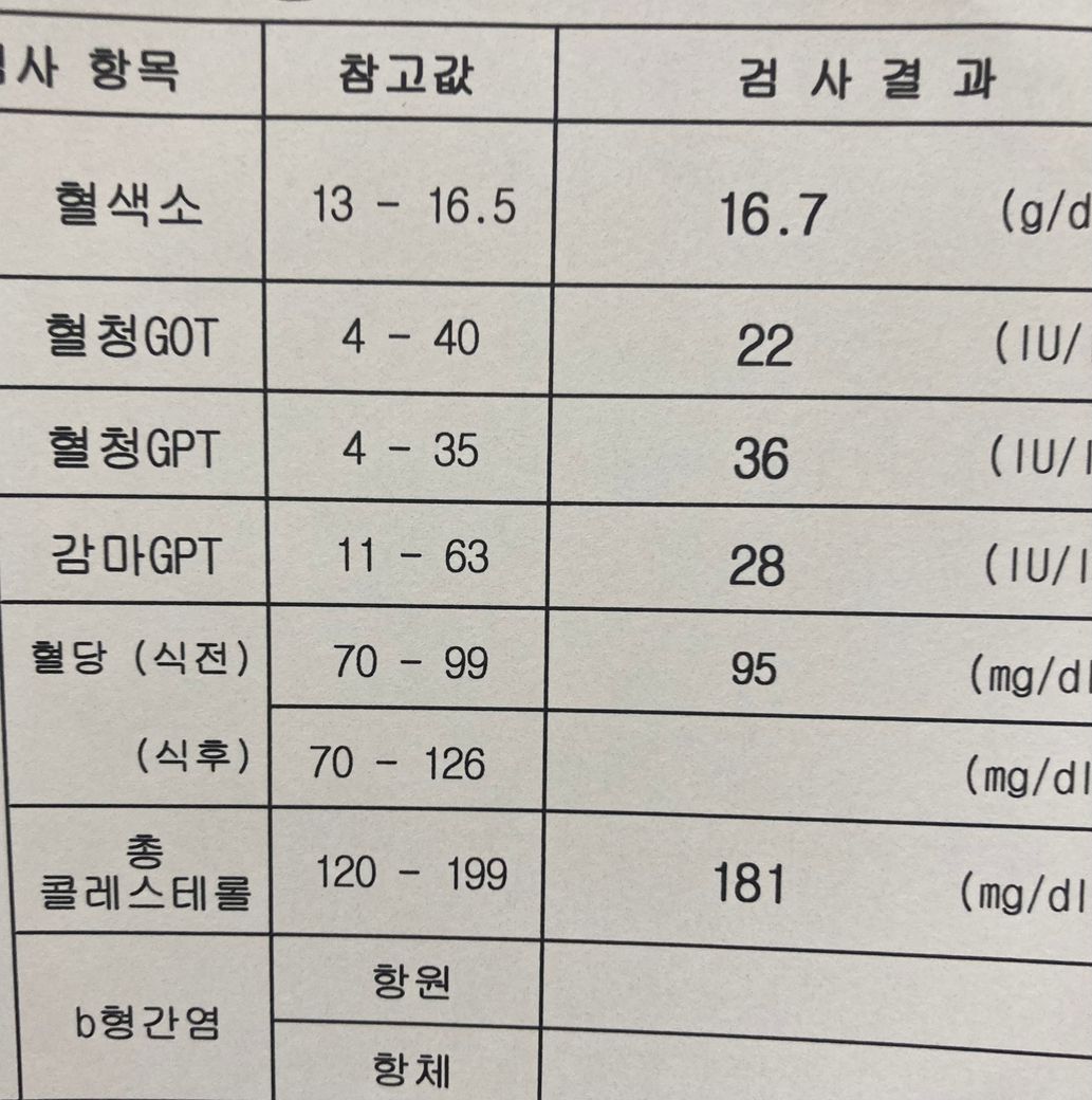 다른건 괜찮은데 혈액검사가 살짝 아쉽네여ㅜ 정상b나왔는데 채용에 있어서 불이익은 없을까요