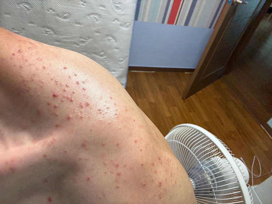 증상은 8/19일부터 발현되기 시작했습니다. 피부과에 가서 하이돌 크림과 약 처방 2주분량을 받았으나 증상이 허전되지 않아서 다시 방문하였습니다. 항생제 1주치 분량과 스테로이드성 연고를 일주일 간 복용하여도 전혀 나아질 기미가 보이지 않는것 같아 대학병원 방문을 고민중입니다.