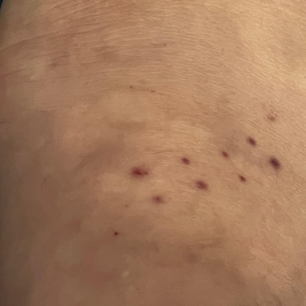 피부 병변이 규칙적으로 생겼네요. 다쳐서 생기기는 어려울것 같고 벌레에 물렸을 가능성이 높을 것 같습니다. 특별한 증상이 없다면 항생제 연고 바르고 지켜보시기 바랍니다.
