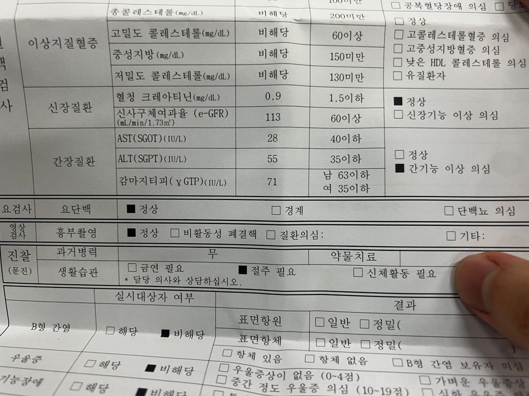 건강검진 결과 , 간기능 이상의심이 나왔는데 수치좀 봐주시겟어요