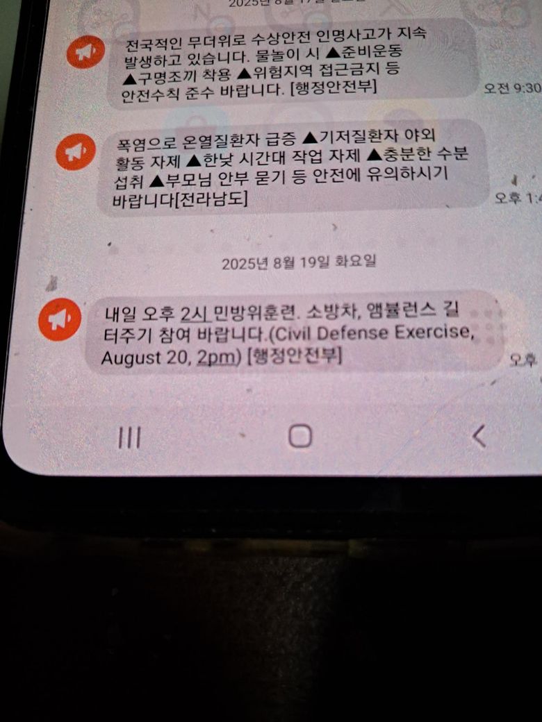 8월 20일 (그러니 내일입니다.) 오후 2시에 민방위 훈련이 있을 예정으로