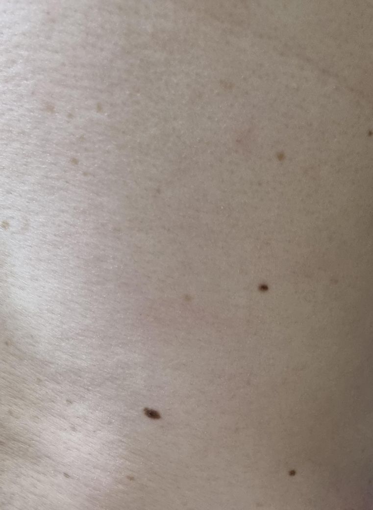 무심코 등을 봤는데 여러개의 점이 갑자기 생긴 것인지지는 모르겠으나 그 중 가장 큰점을 확대한 사진이 2장의 사진중 아래사진입니다. 만졌을때 표면은 매끄러운데 사이즈가 신경이 쓰입니다. 피부과 진료가 필요할까요?