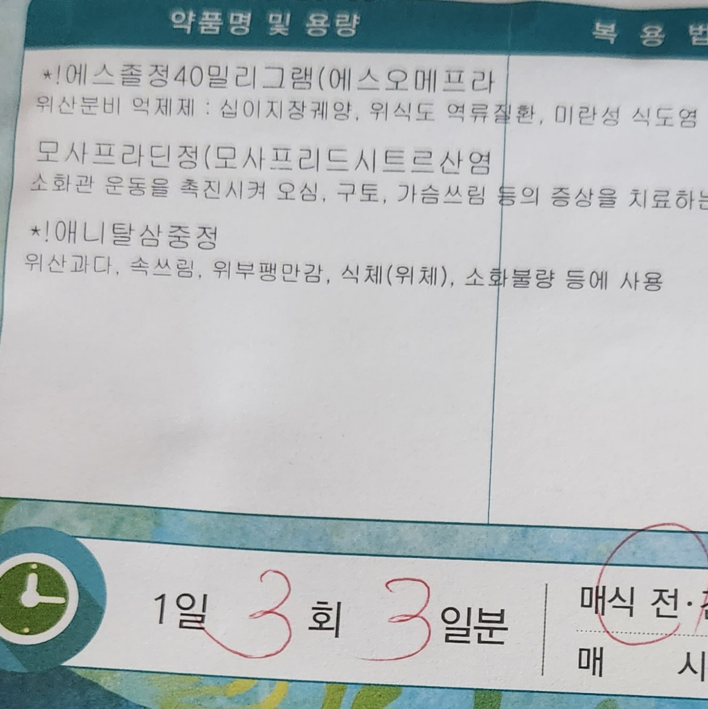 모사프라딘정이랑 모사프리엠정은 똑같은 약이라서 1개만 드셔야해요.