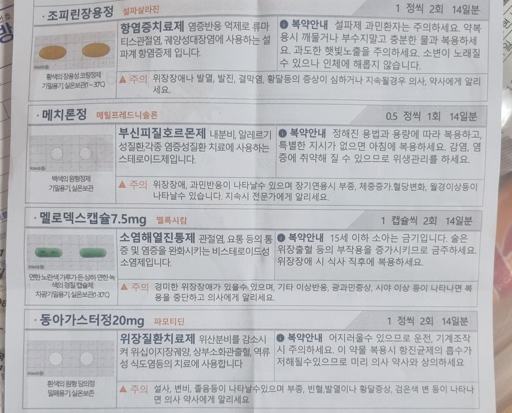 이곳에서 아래 그림과 같은 약을 처방받았는데