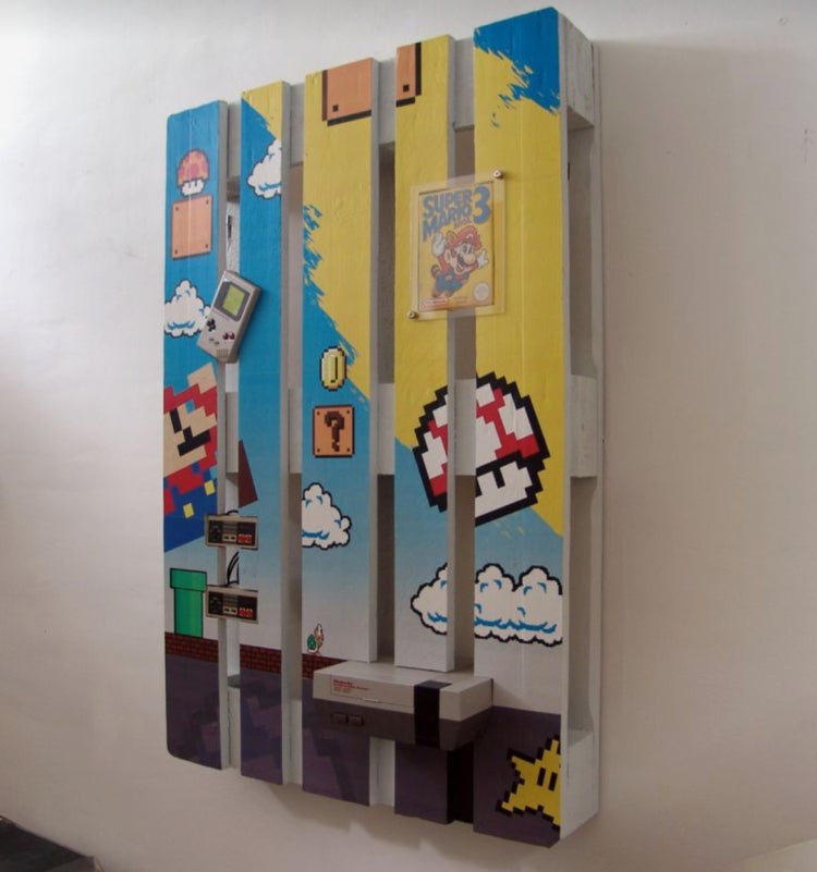 나무파레트에 물감으로 칠한 것 같아요.