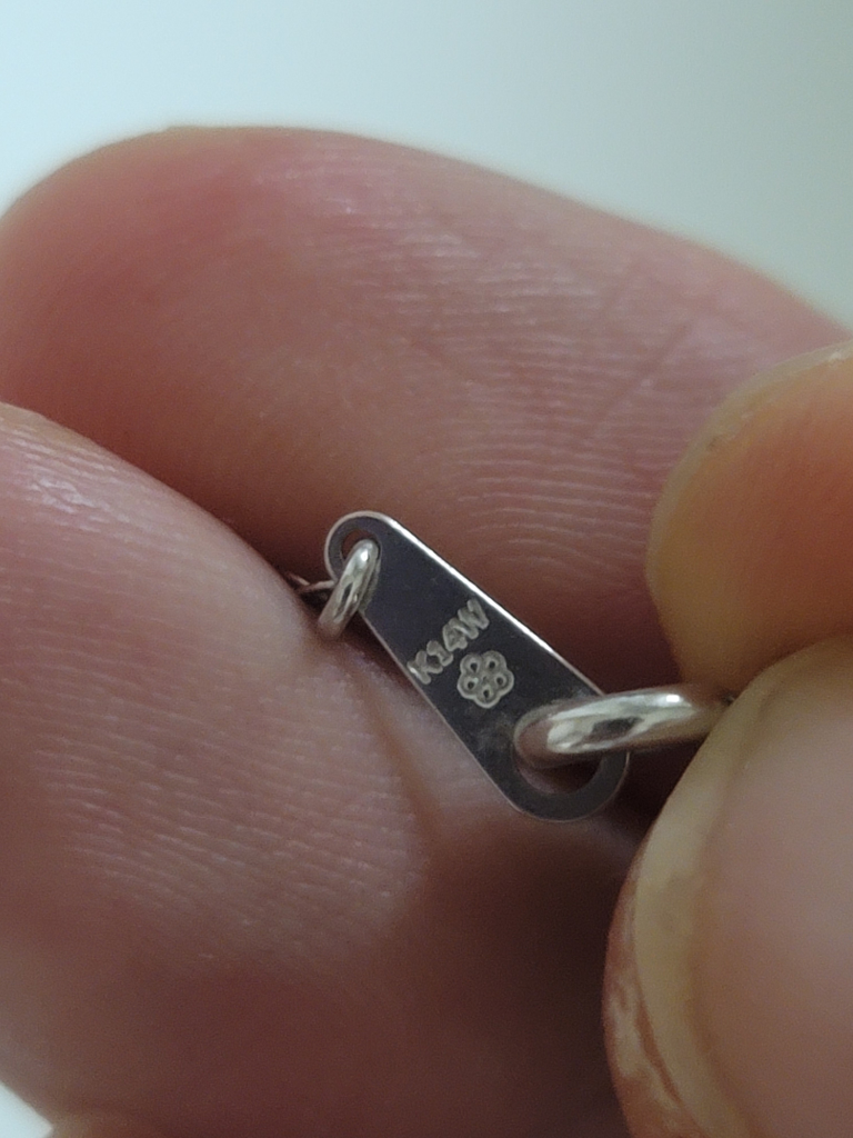 안녕하세요. 손용준 인문·예술전문가입니다. 목걸이 줄에 k14w라고 써 있는 것은 14K금을 말하고 뒤에 W 는 아마도 색상 WHITE GOLD 를 말하는 것으로 판단 됩니다. 만일 은이라면 SILVER 라고 해서 S 라고 표기 되어 있겠지요.