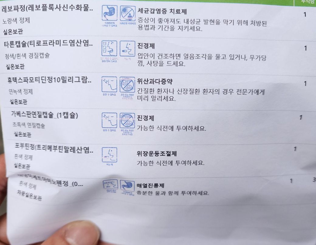 게실염 진단받고 처방받은 약인데, 사진상에 보이는 약과 콘서타 서방정 27mg, 미노페시아정 1mg 함께 복용해도 괜찮은가요?