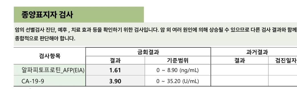 종양표지자 검사와 당화혈색소 검사 결과 봐주세요!
