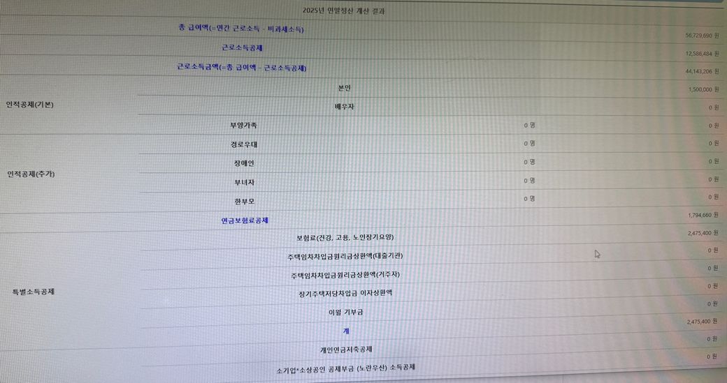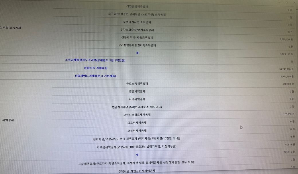 연말정산 내용은 사진으로 첨부해 뒀습니다.