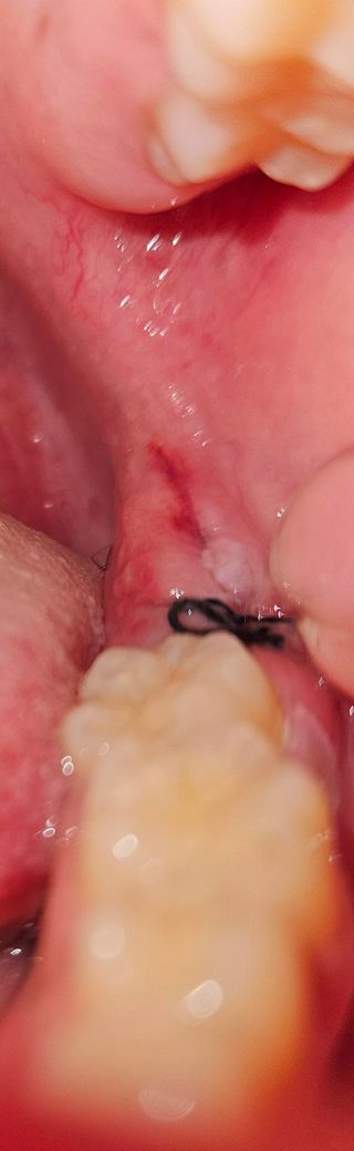 사랑니 발치 하고 아직 48시간이 안됐는데요 흰색이 보이는게 염증인지 아닌지 궁금해요 그리고 저 세로로 찢어져있는건 시술 후 난 상처인가요 아니면 제가 부주의해서 찢어진걸까요?ㅠㅠ