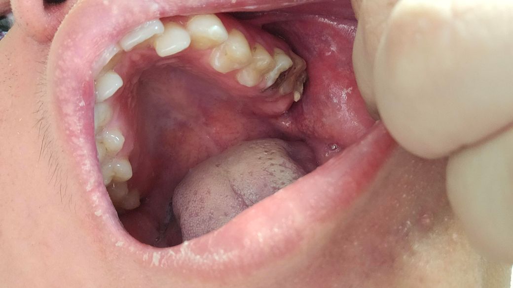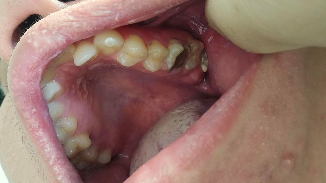 빠른치료가 필요할것으로 보이며 충치가 치아의 뿌리 끝까지 진행이 되었을 경우 발치를 해야 할수 있습니다.