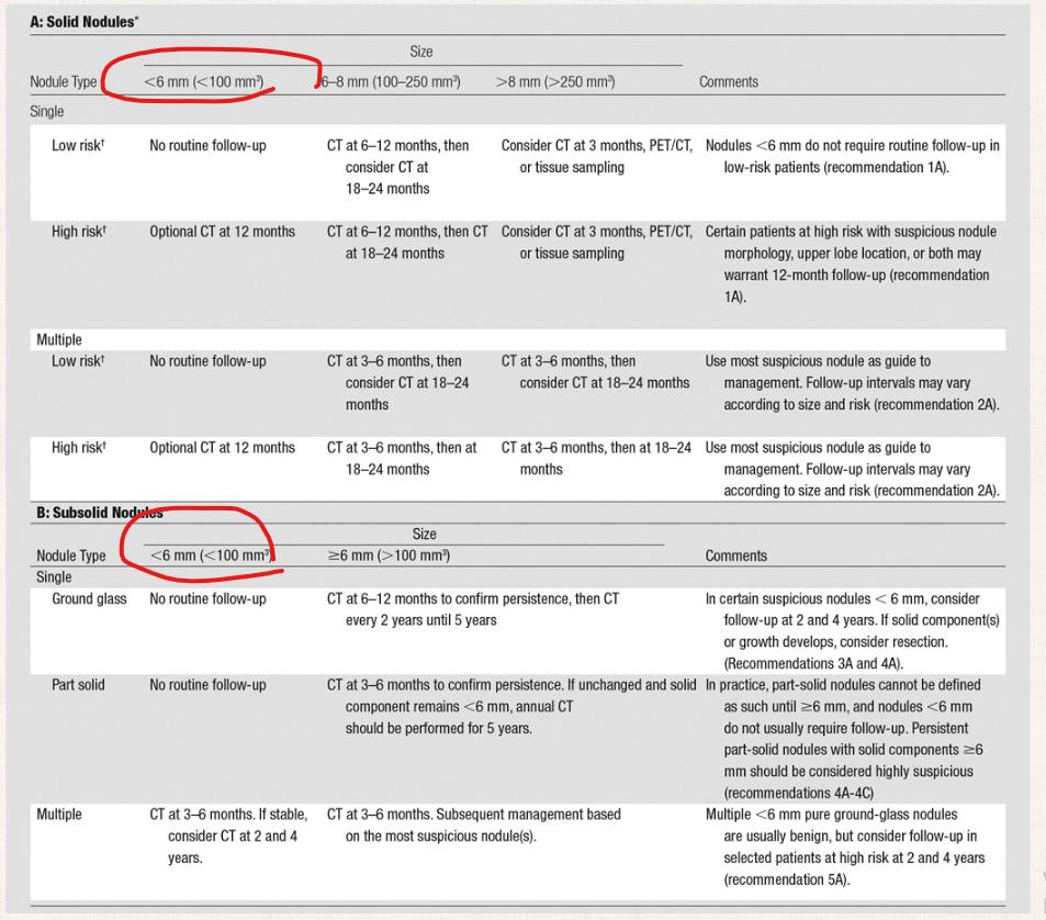 환자분이 걱정하시는 결절의 크기 정도는 명시조차 되지 않습니다. 6mm보다 작은 경우에 포함이 되는 것이죠