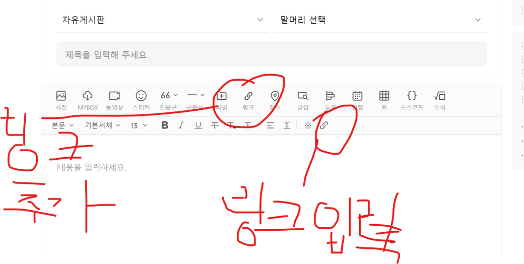 PC에서 글쓰기할때 아래 있는 작은 링크를 사용하시면 이미지나 특정 텍스트에도 링크를 걸수 있는 용도입니다.