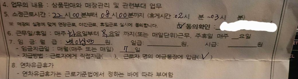사진에 보이는것과 같이 근로계약서를 작성했습니다. 2023년 1월-2025년 8월까지근무