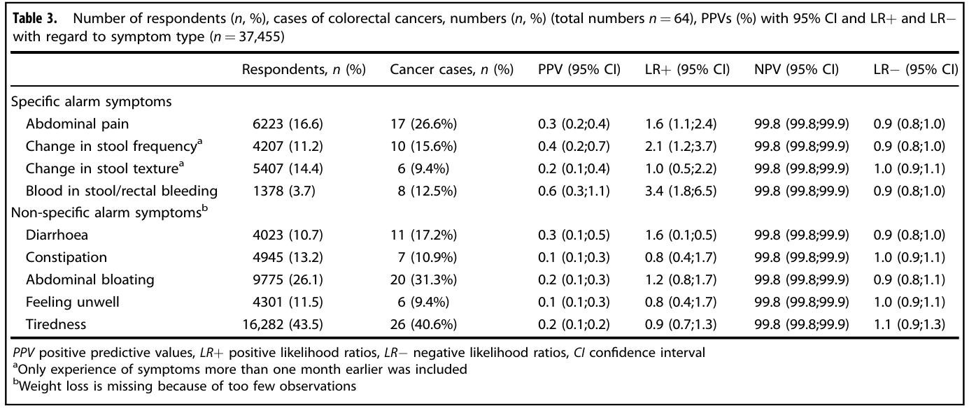 Predictive values of colorectal cancer alarm symptoms in the general population: a nationwide cohort study(British Journal of Cancer (2019) 120:595–600)