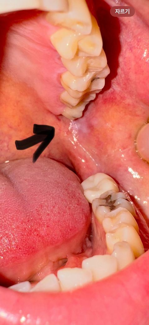 어금니쪽 볼에 하얀게 있는데 이게뭘까요