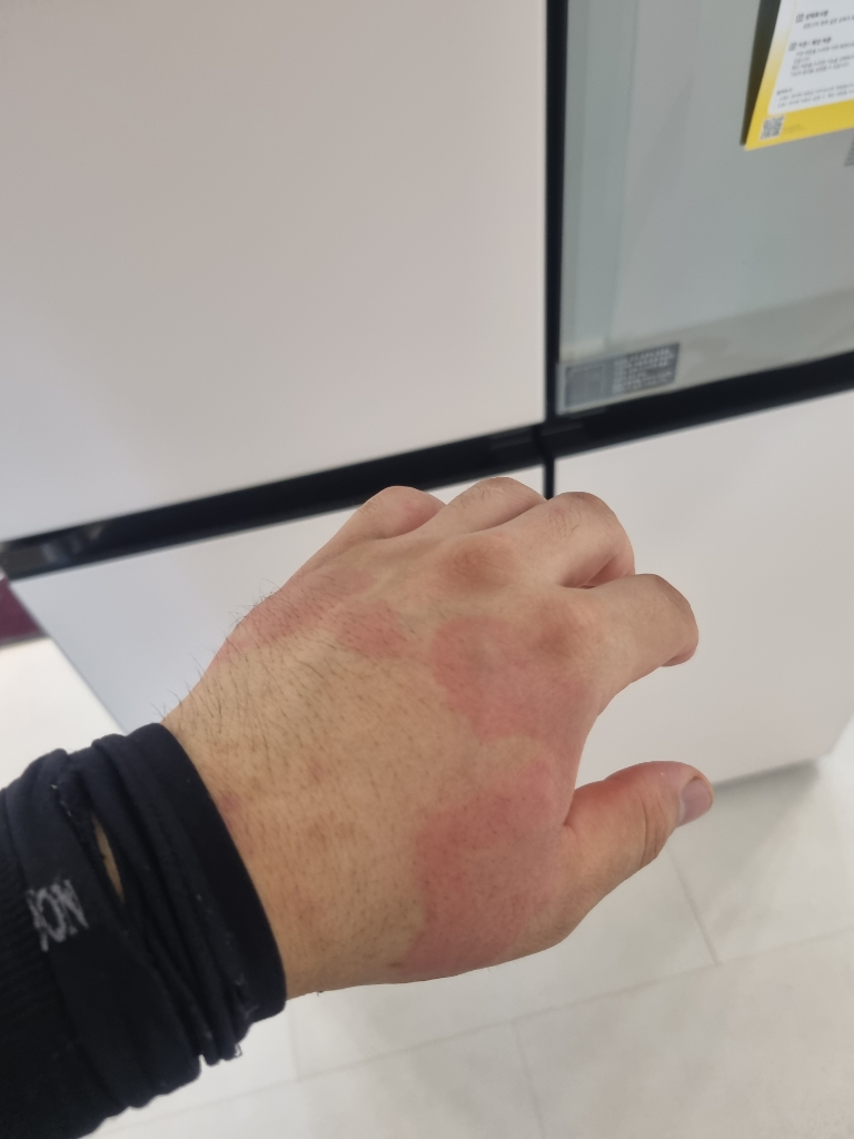 소양감 등이 있으시다면 응급처치로 얼음찜질을 해주시고, 피부과에 신속히 내원하시어 정확한 진단 및 처방을 받으시는 것을 추천드립니다.
