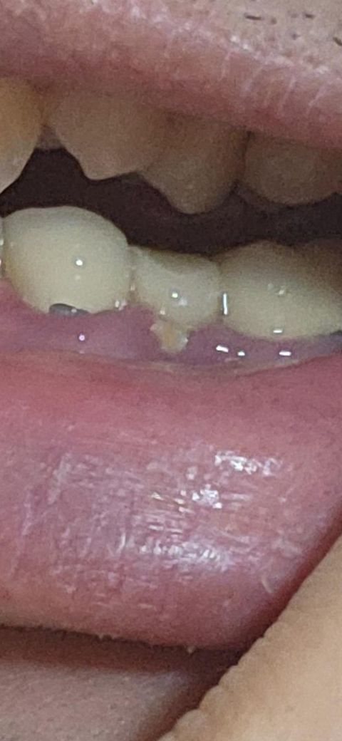 2주전쯤 청소시에 따갑고 음료등 닿으면 따끔한느낌이있었고 하얀막같은게 생겼습니다