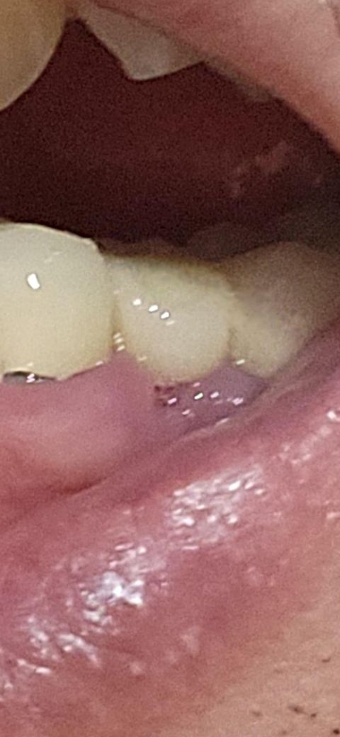 15년전 브릿지한 치아이며 병변은 가운데(치아없는곳) 잇몸입니다.