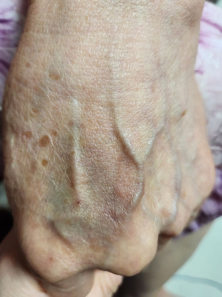 실패한 왼쪽 손등 부위가 좀 이상합니다.