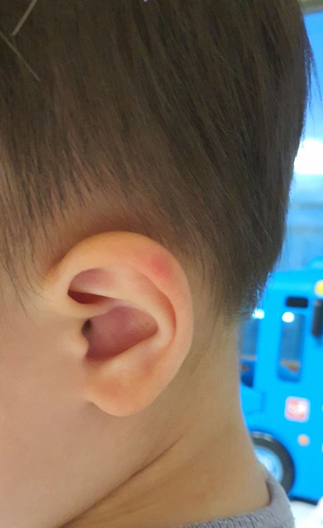 아기 양쪽 귀에 붉은 반점이 왜 날까요?